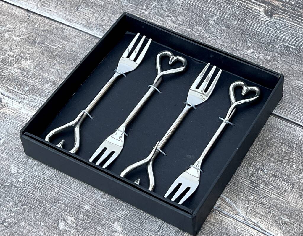 Set Of Four Love Heart Handle Pastry Forks