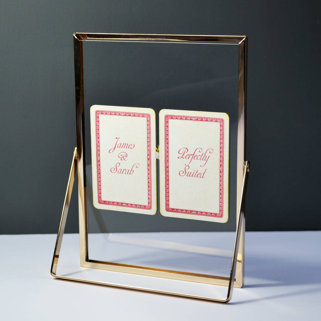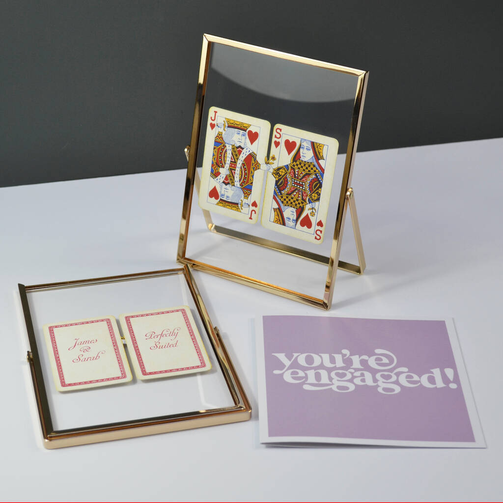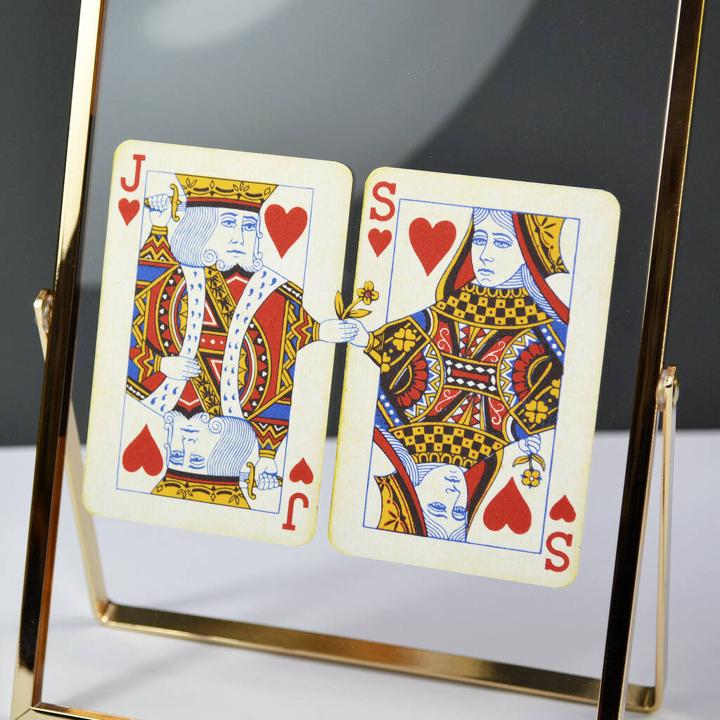 This beautiful gift is a work of art that celebrates a special moment in a couple's life. Perfect for engagements but equally wonderful for anniversaries, weddings or simply just to show someone how much you care. The specially created playing cards design is based on real, vintage King and Queen playing cards, and the framing means both sides of the cards can be seen.