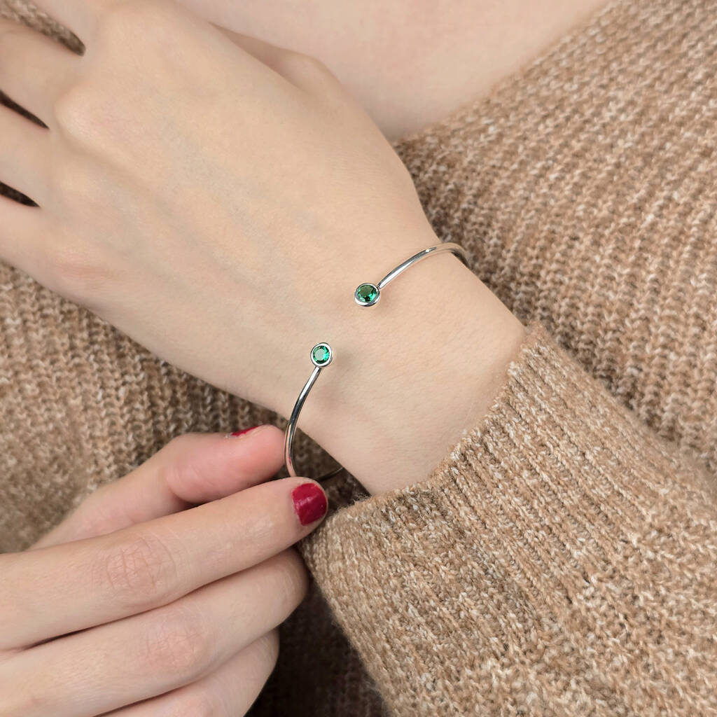 Dainty Emerald May Birthstone Sterling Silver Bangle