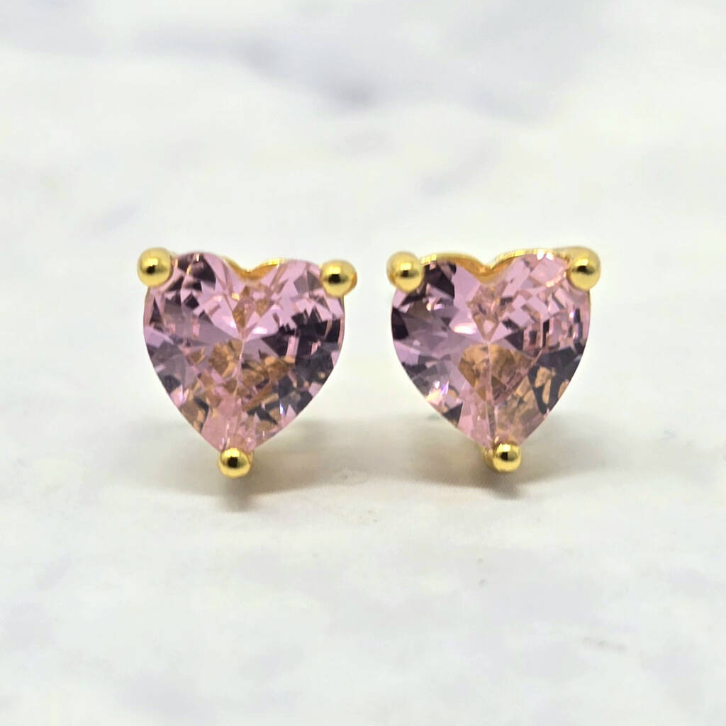 Pink Tourmaline Heart October Birthstone Stud Earrings