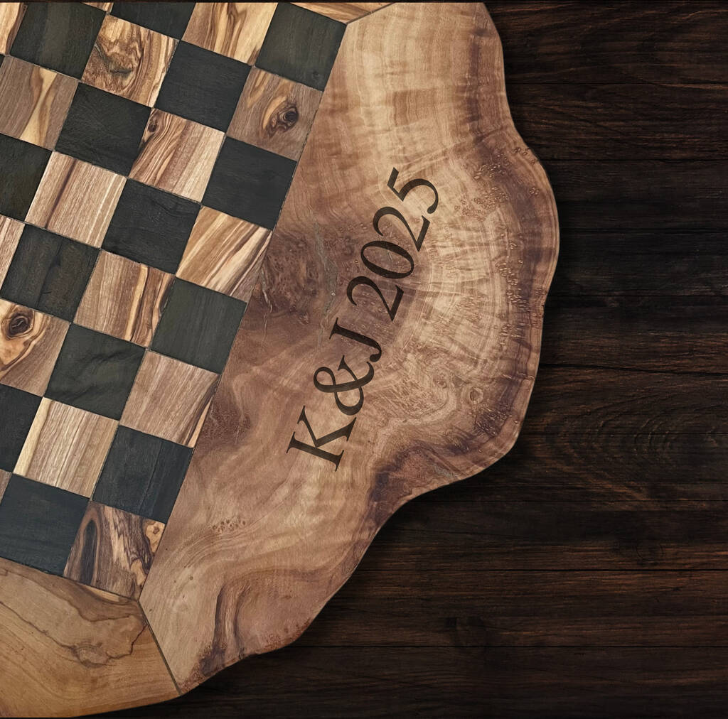Customisable Chess Board, Natural Effect Wood, Initials, Name