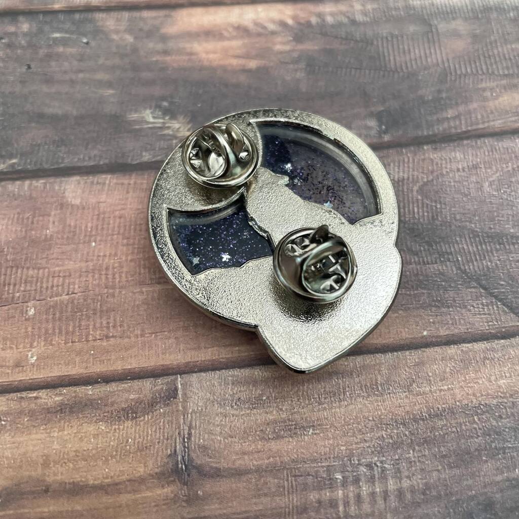 Moving Wolf Howling With Moon Enamel Pin With Shaker Glitter And Stars