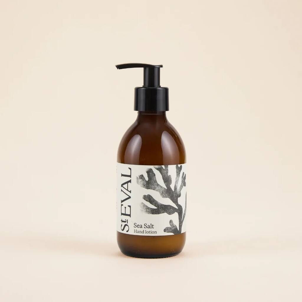 Indulge your skin with the fresh scent of this St. Eval Sea Salt Hand Lotion — a soothing blend inspired by the wild Cornish coast. Crafted in Cornwall, the formula absorbs quickly, comforting dry skin with long-lasting hydration without any greasy residue. Housed in an elegant amber bottle with a convenient pump, it’s perfect for everyday use in kitchens, bathrooms, or by the bedside.