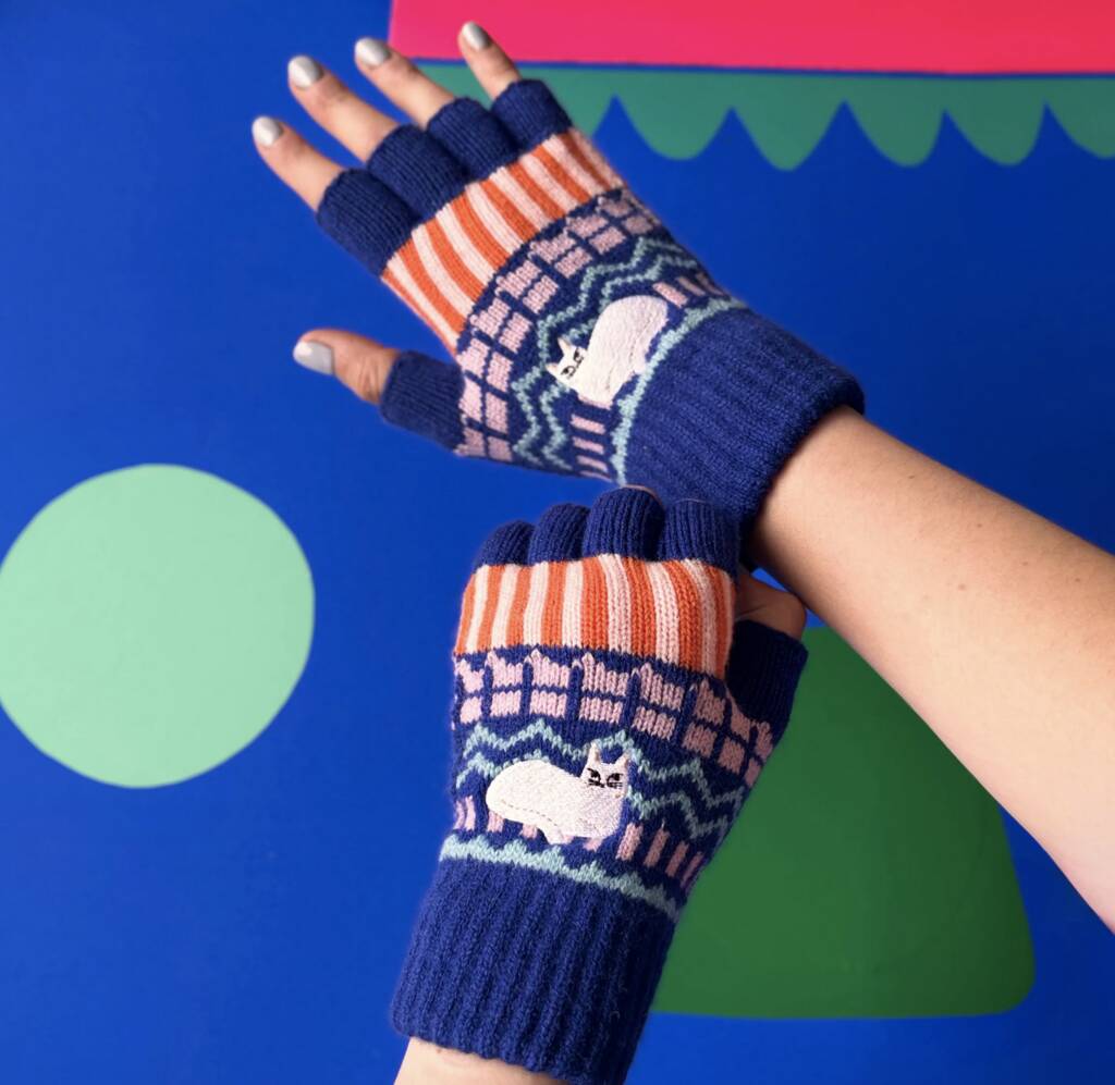 Catnip Cute Embroidered Cat Fair Isle Gloves, 1 of 3