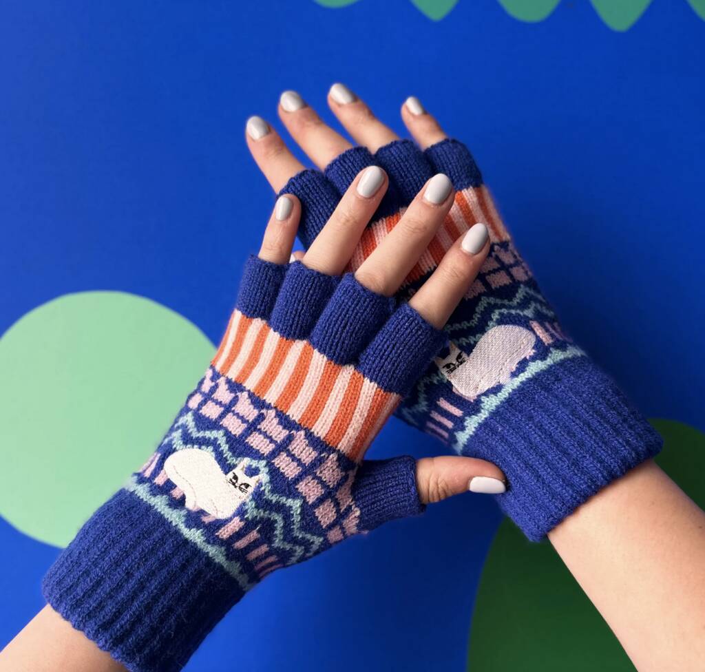 Catnip Cute Embroidered Cat Fair Isle Gloves