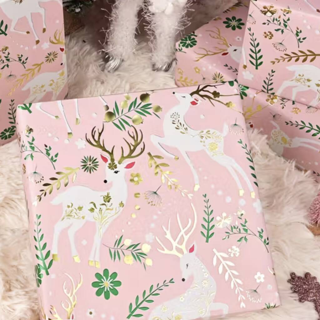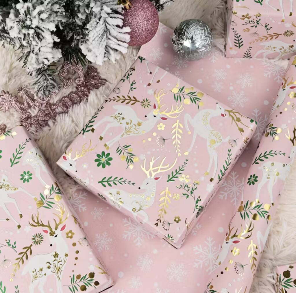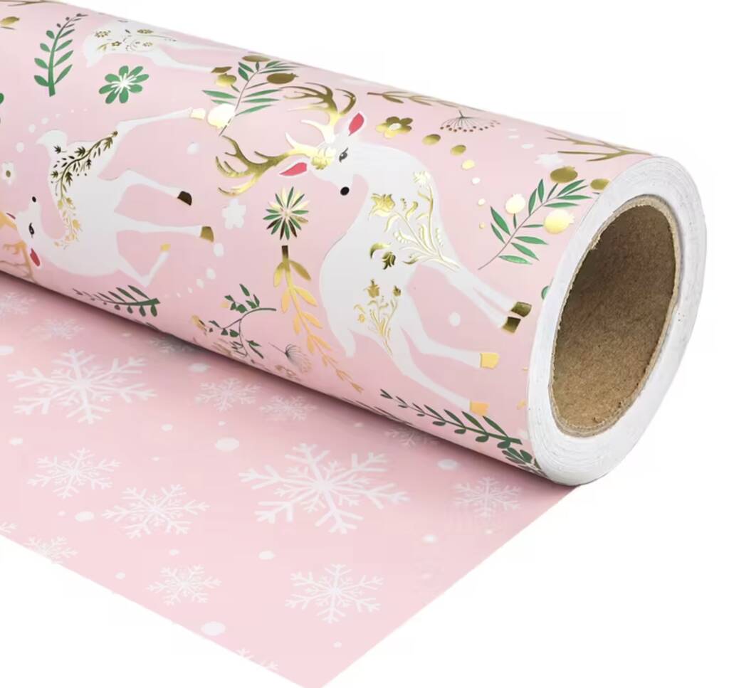 Double Sided Pink And Foil Christmas Wrapping Paper