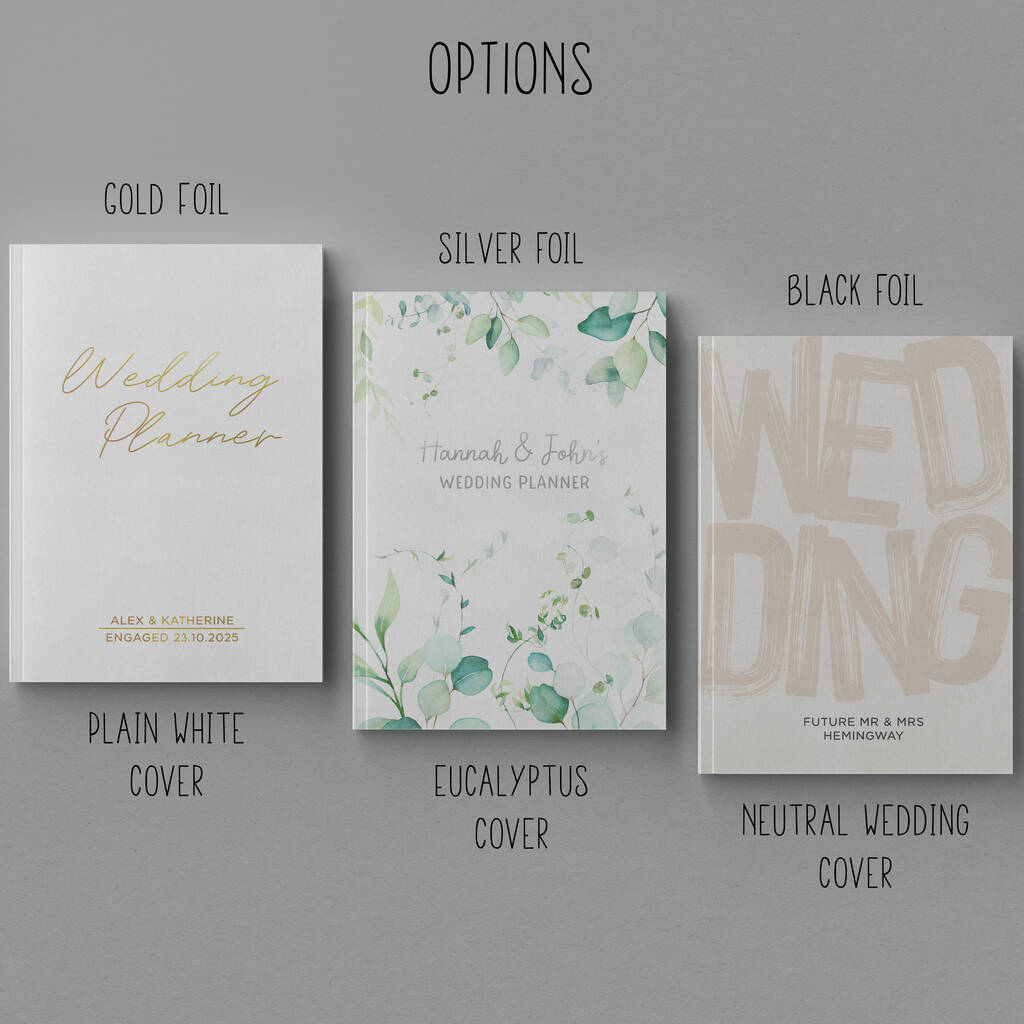 A beautiful personalised wedding planner where you can add any text in either Gold, Silver or Black Foil, plus choose the cover design.