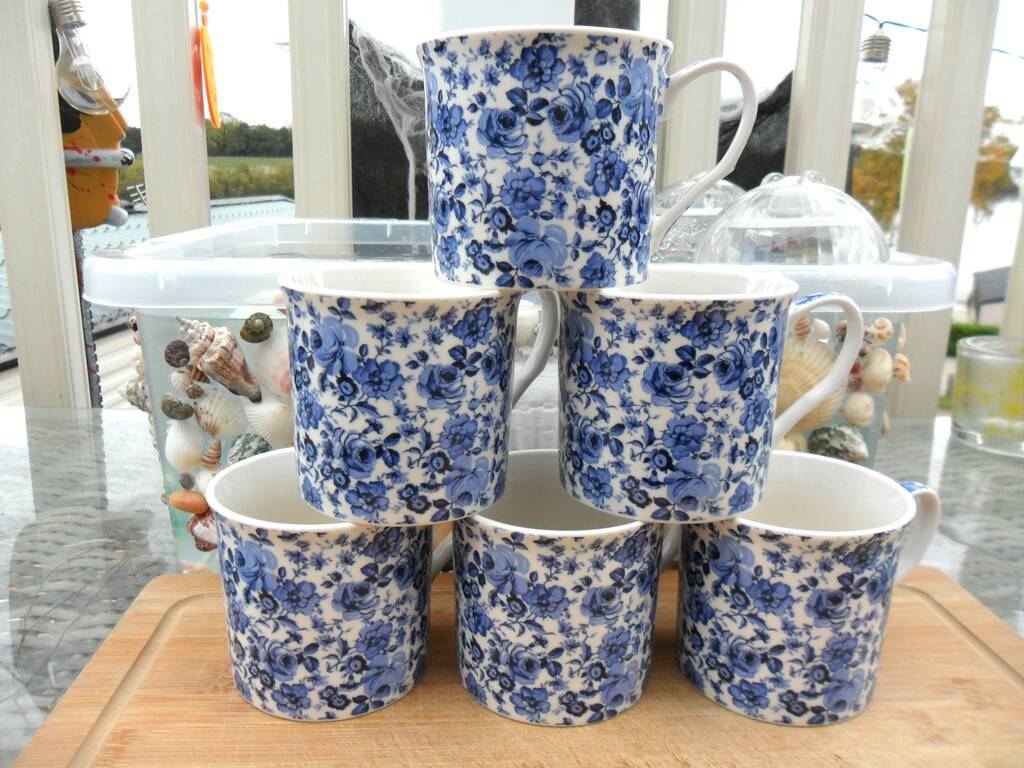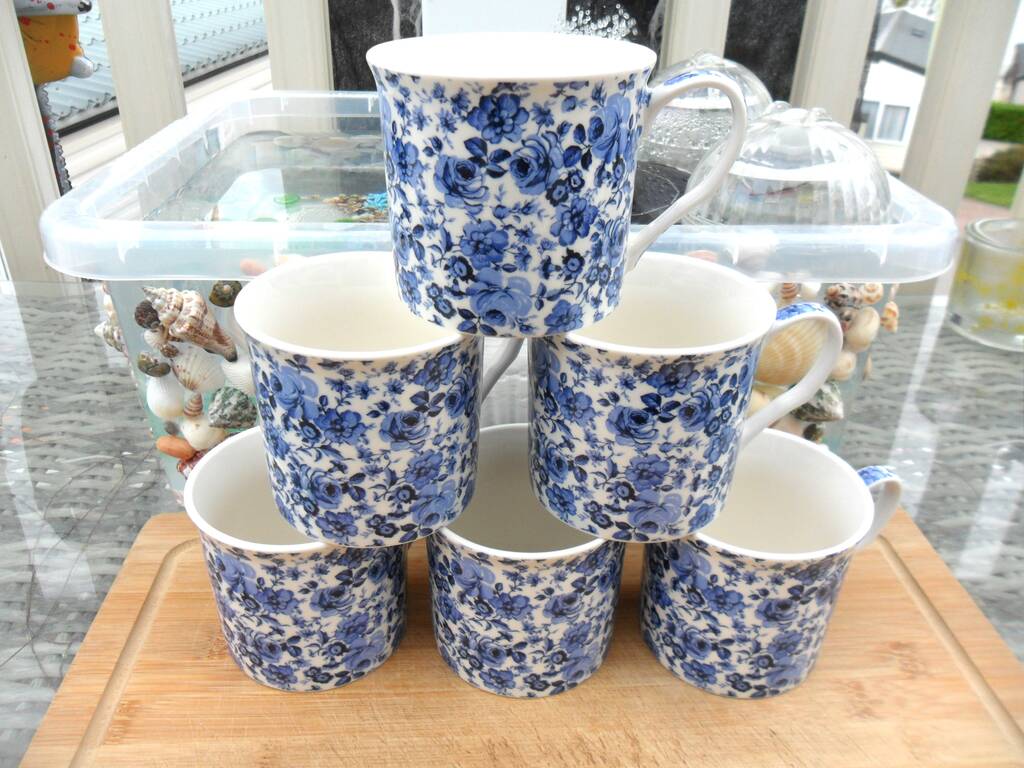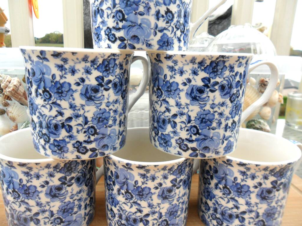Set Of Six Palace Mugs In Blue Rose Chintz Design
