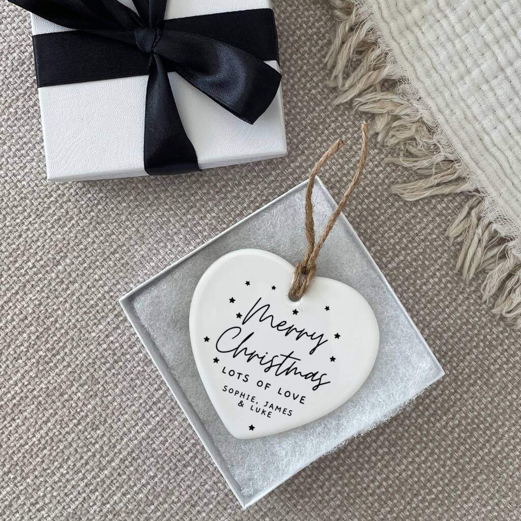 Features: - High-quality ceramic bauble with glossy finish - Personalised with name, date, or short message - Comes with ribbon for easy hanging - Ideal for couples, families, children, pets, or friends - Thoughtful gift for first Christmas, new home, or seasonal surprise