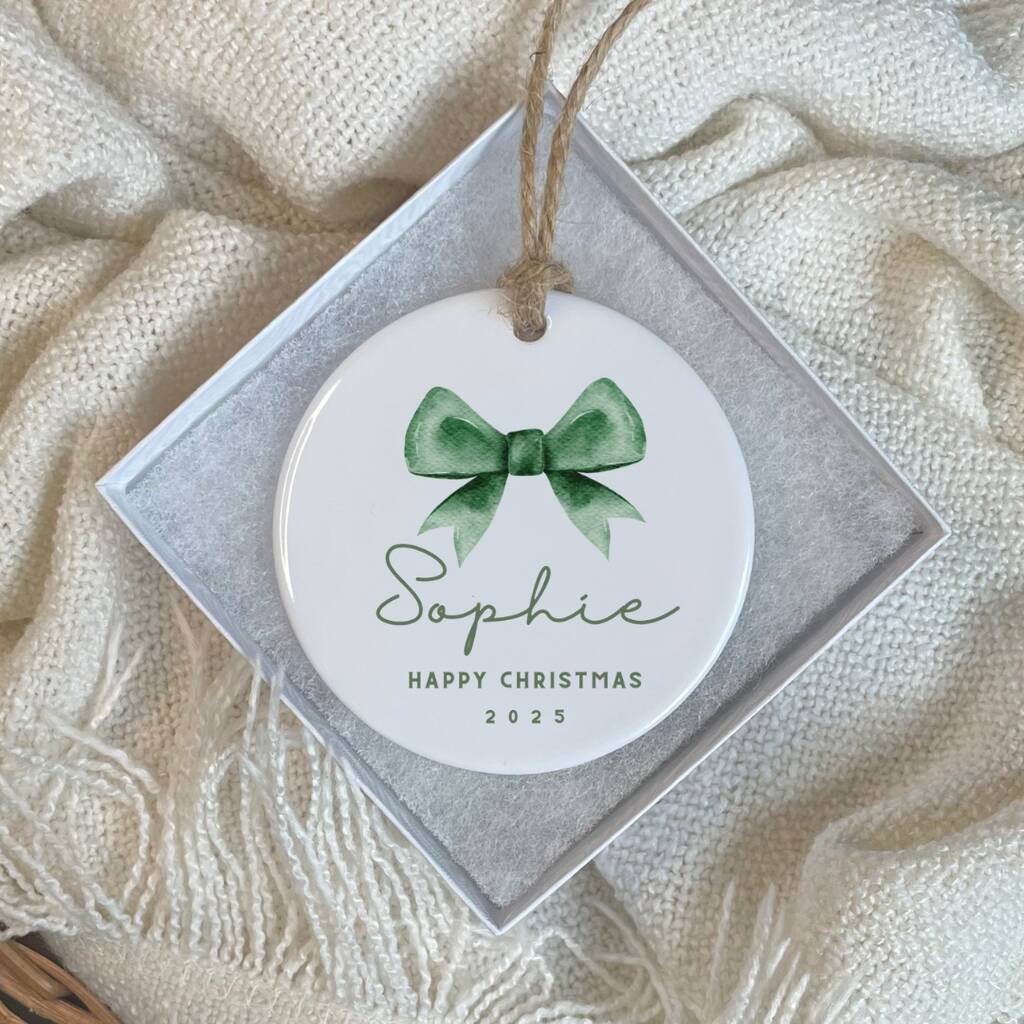 Custom Text Christmas Ornament Bauble Bow