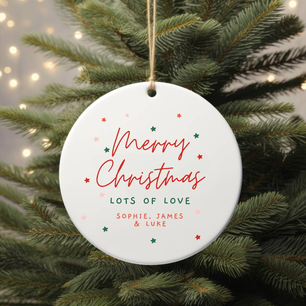 Features: - High-quality ceramic bauble with glossy finish - Personalised with name, date, or short message - Comes with ribbon for easy hanging - Ideal for couples, families, children, pets, or friends - Thoughtful gift for first Christmas, new home, or seasonal surprise