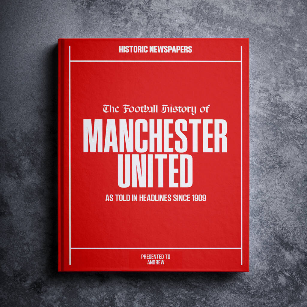 Allow Manchester United fans to relive the greatest moments in football history through newspaper headlines.With a hand finished book custom made for you.