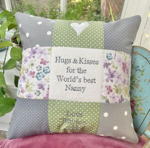Embroidered Letter Cushion In Soft Blue