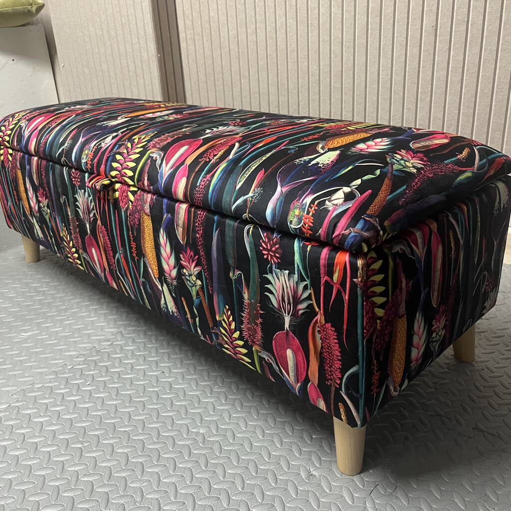 Botanical Velvet Storage Ottoman Footstool, 1 of 6
