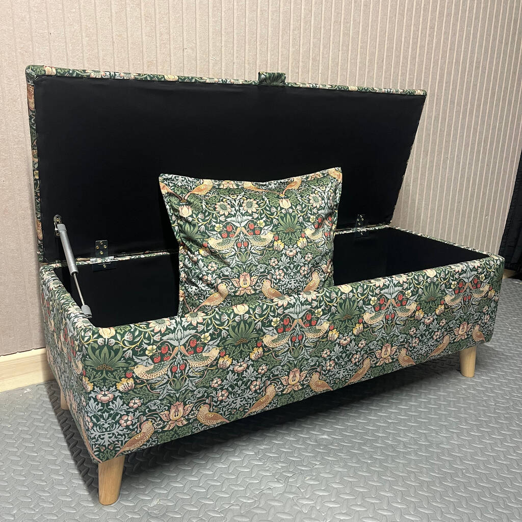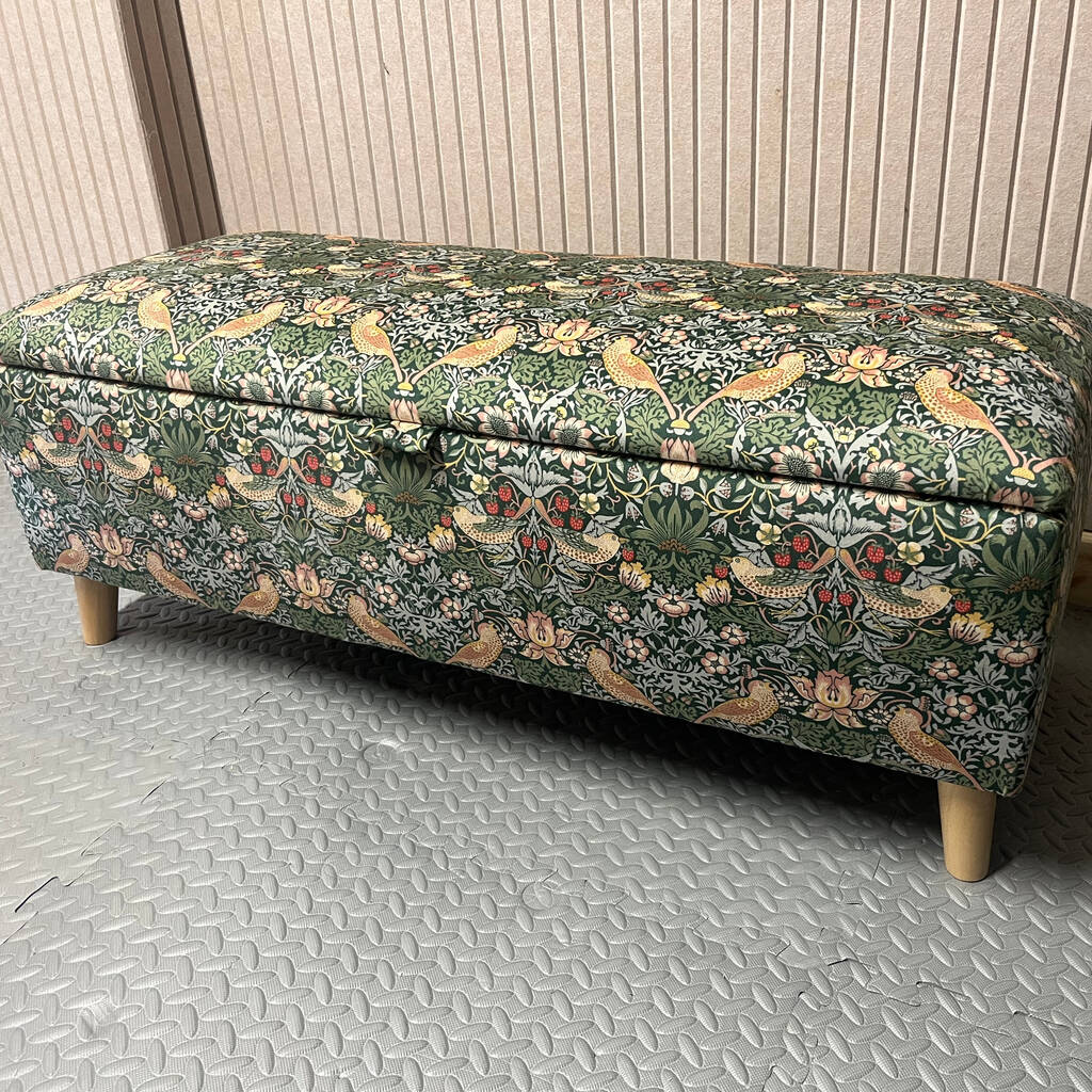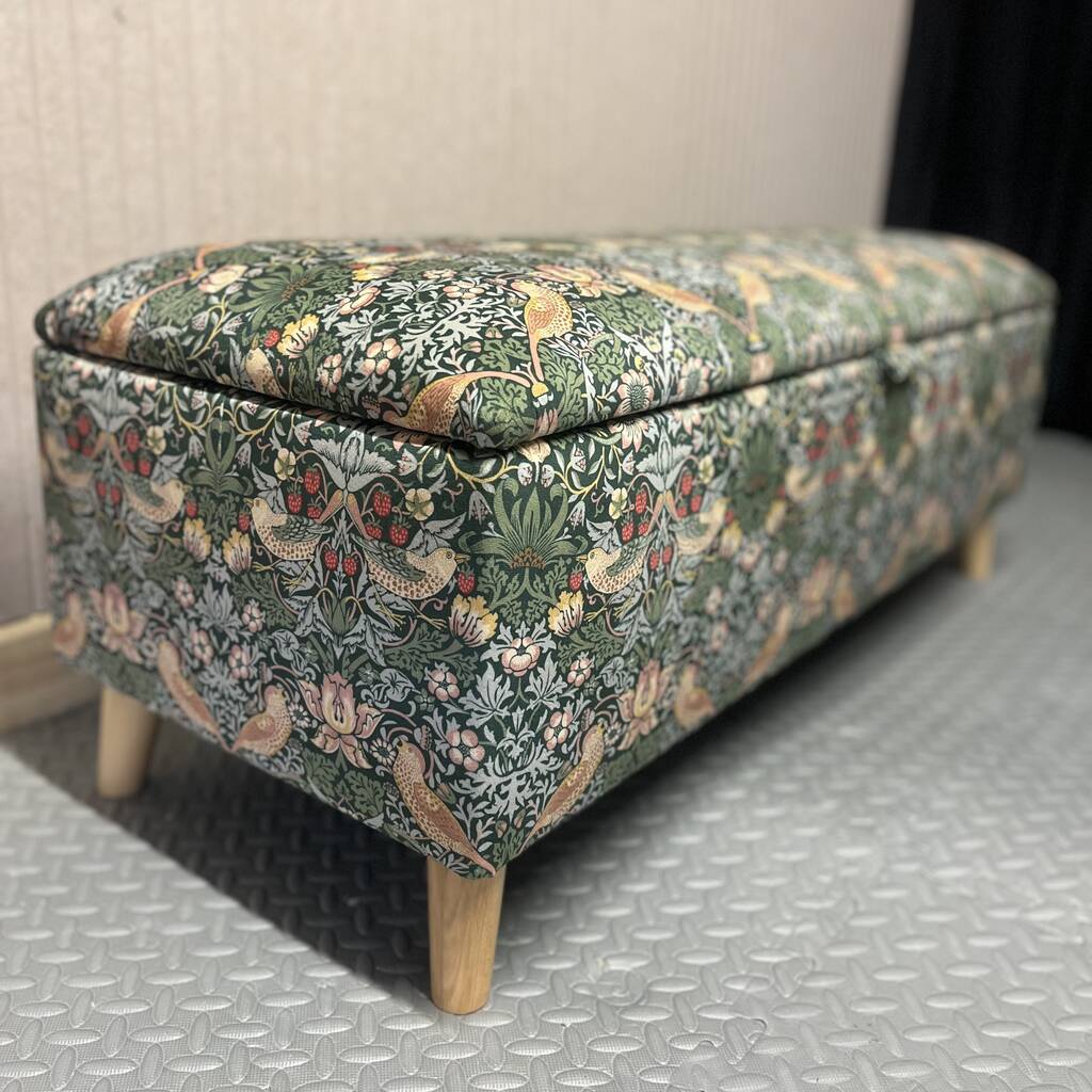 William Morris Forest Strawberry Thief Storage Ottoman Footstool