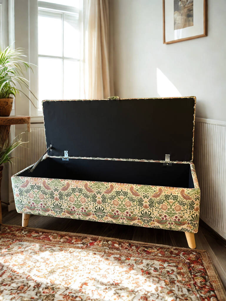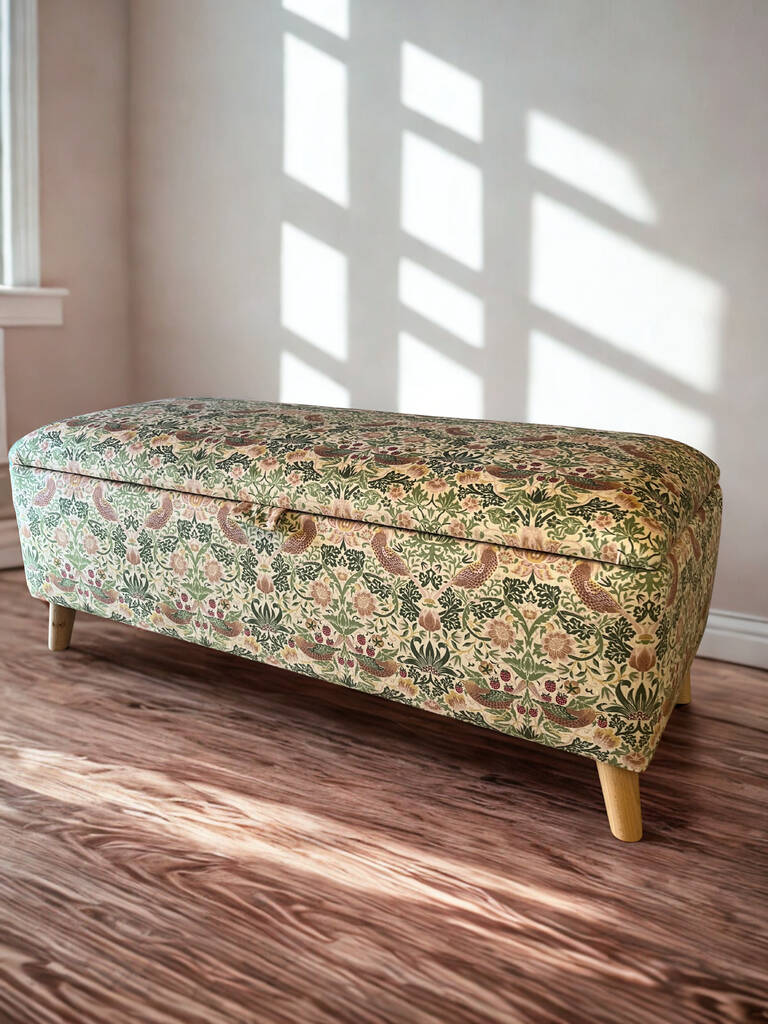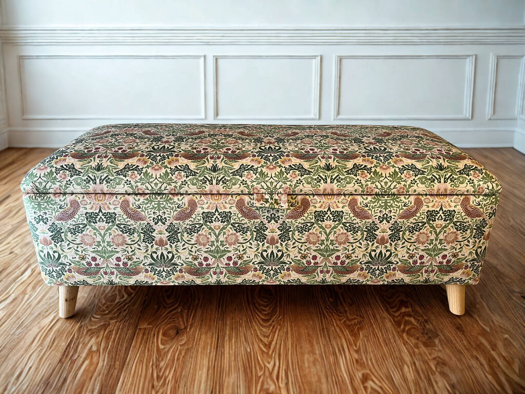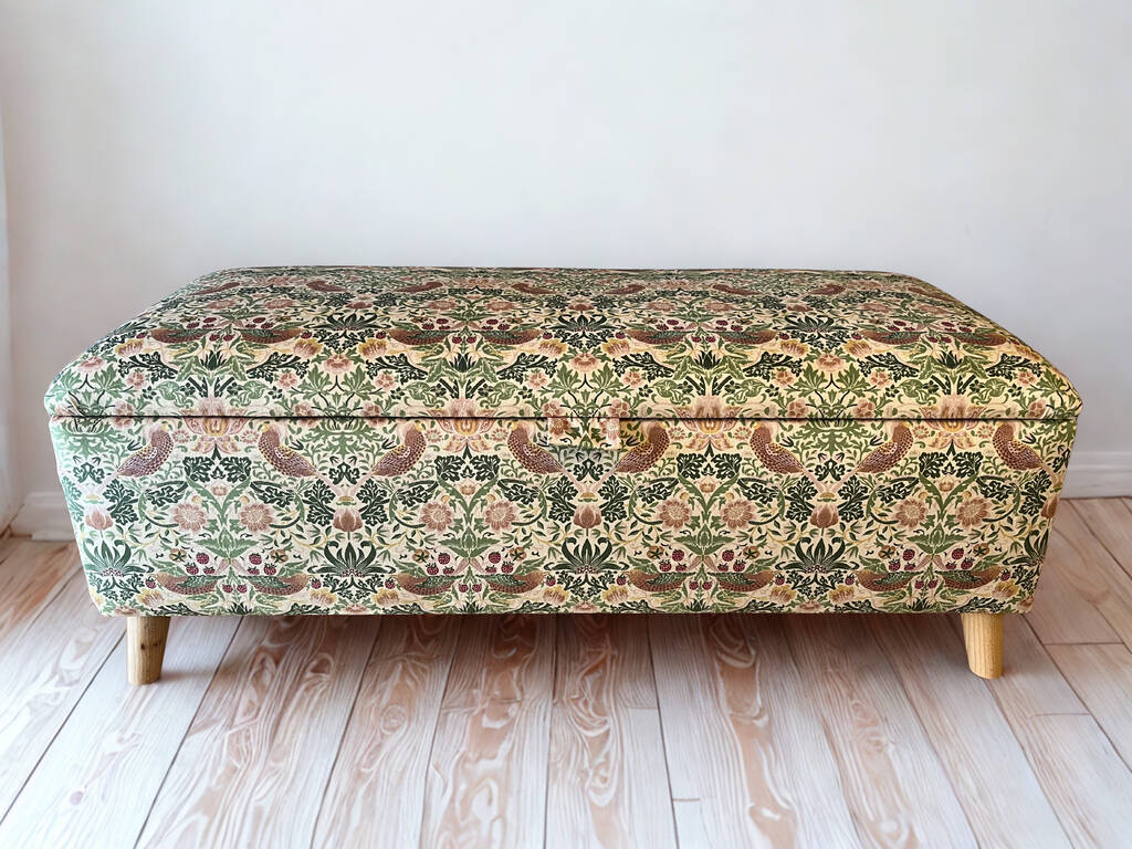 William Morris Light Strawberry Thief Storage Ottoman Footstool