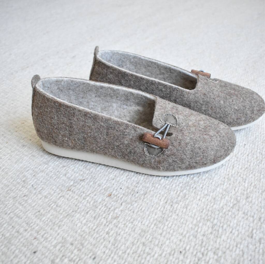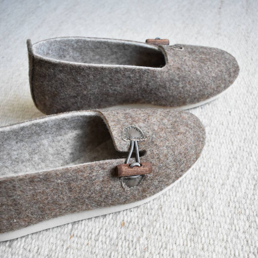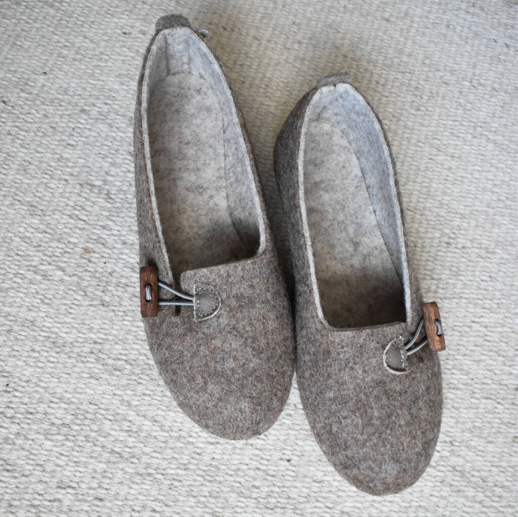 Wool Ballerina Style Slippers With Toggle Oak Brown