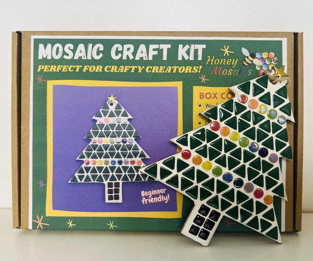 Get into the festive spirit with this creative Christmas craft kit, suitable for children aged 5+ and fun for all ages. Each kit includes everything you need to make your very own mosaic Christmas tree, beautifully boxed with easy, step-by-step instructions.
