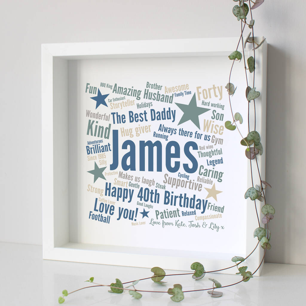 This personalised word art print makes the perfect 40th birthday gift idea for him or her!