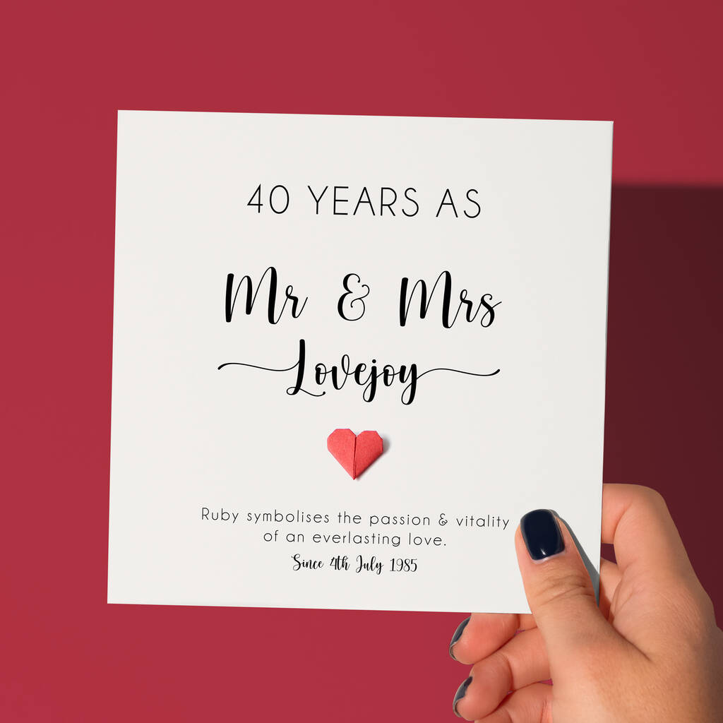 Personalised 40th Ruby Wedding Anniversary Card