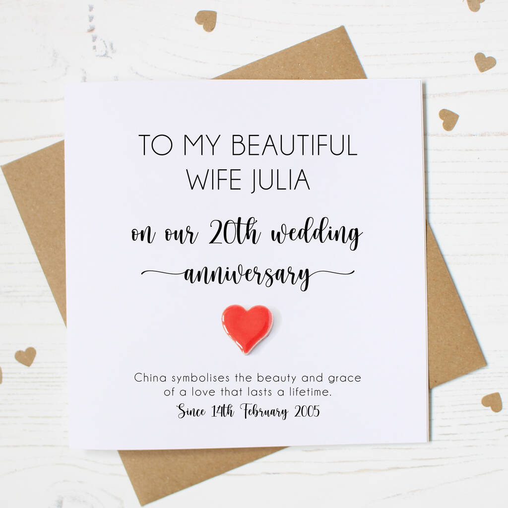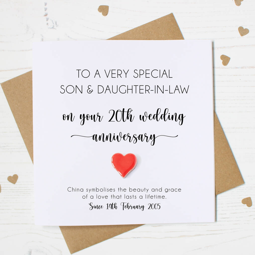 This 20th anniversary card is the perfect keepsake for a husband, wife, couple, daughter and son-in-law, or son and daughter-in-law.