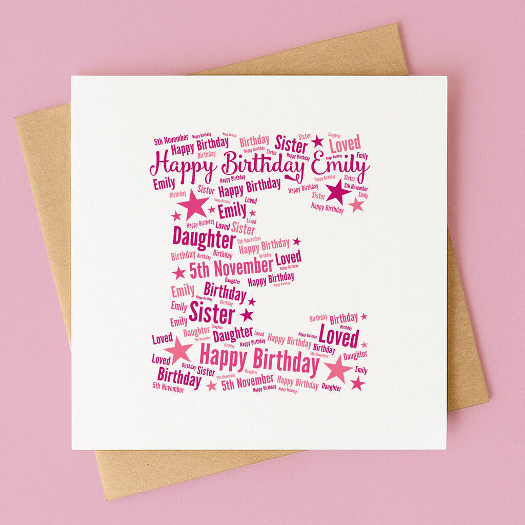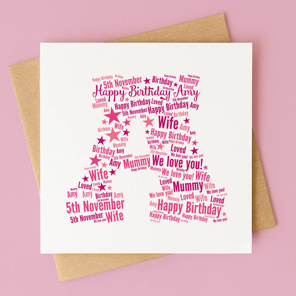 Create a truly meaningful keepsake with this personalised letter word art card, beautifully designed with the words and name of your choice.