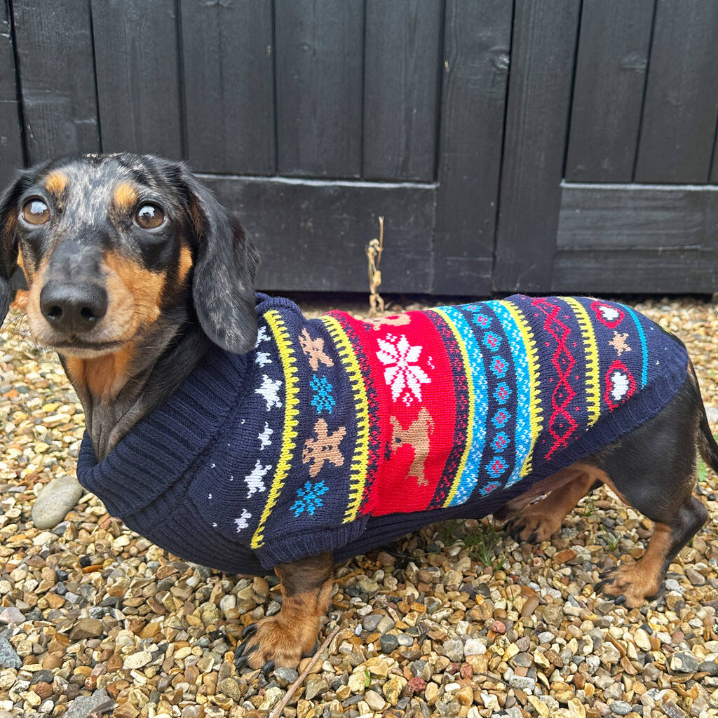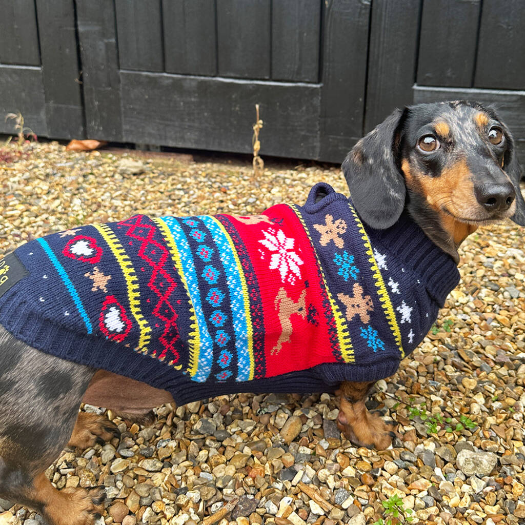 Christmas Blue Fairisle Miniature Dachshund Jumper, 1 of 3