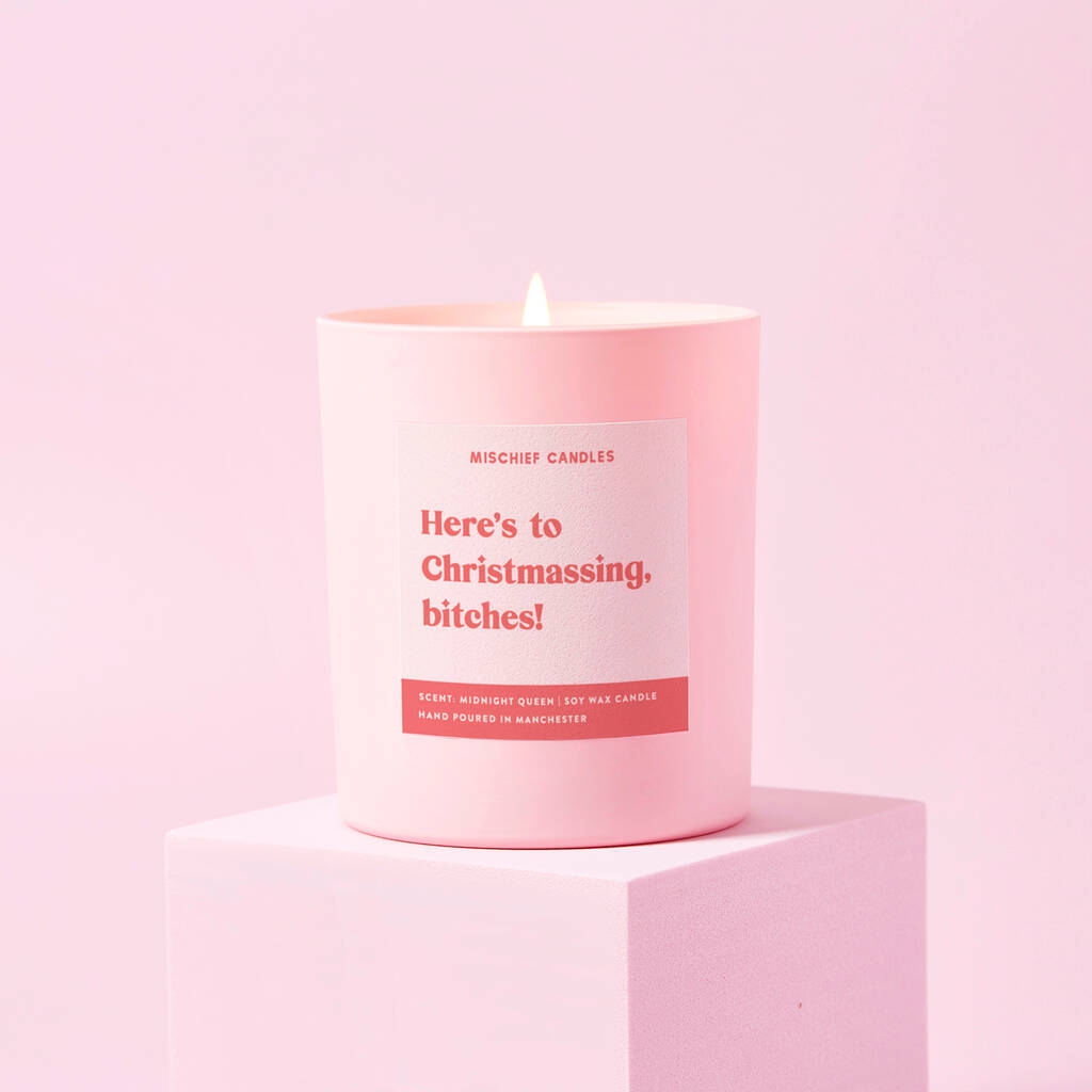 Whether you’re struggling to get in the holiday spirit and need hyping up to finally get that tree decorated, or you’re about to attempt to cook a turkey for eight people for the first time and your sous chef is a toddler, this candle will do the trick! Light for some Christmas confidence when you need it most - and breathe. Our hand-poured container candles come in a range of scents so you can get Christmassing in style. The label reads ‘Here’s to Christmassing, bitches!' in a bold, red, retro font.
