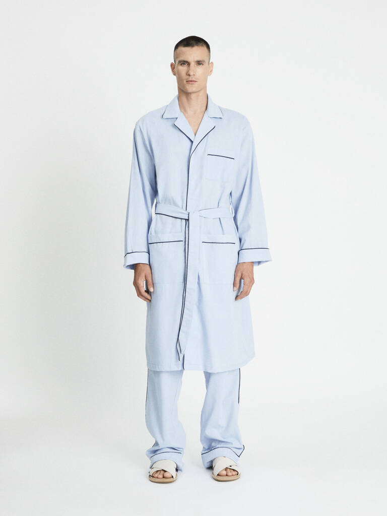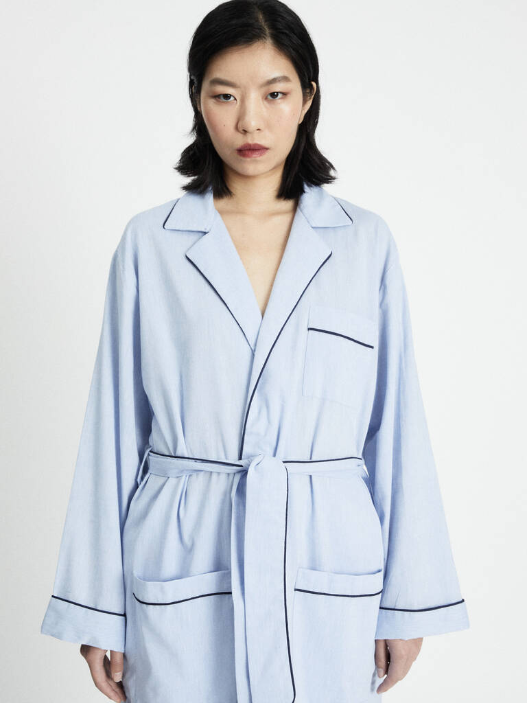 Sky Blue Unisex Relaxed Fit 100% Cotton Oxford Bathrobe
