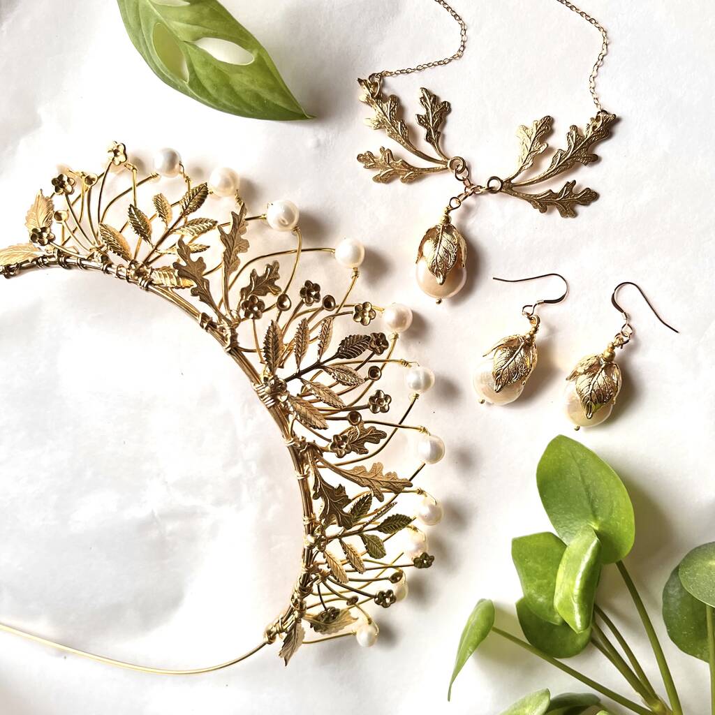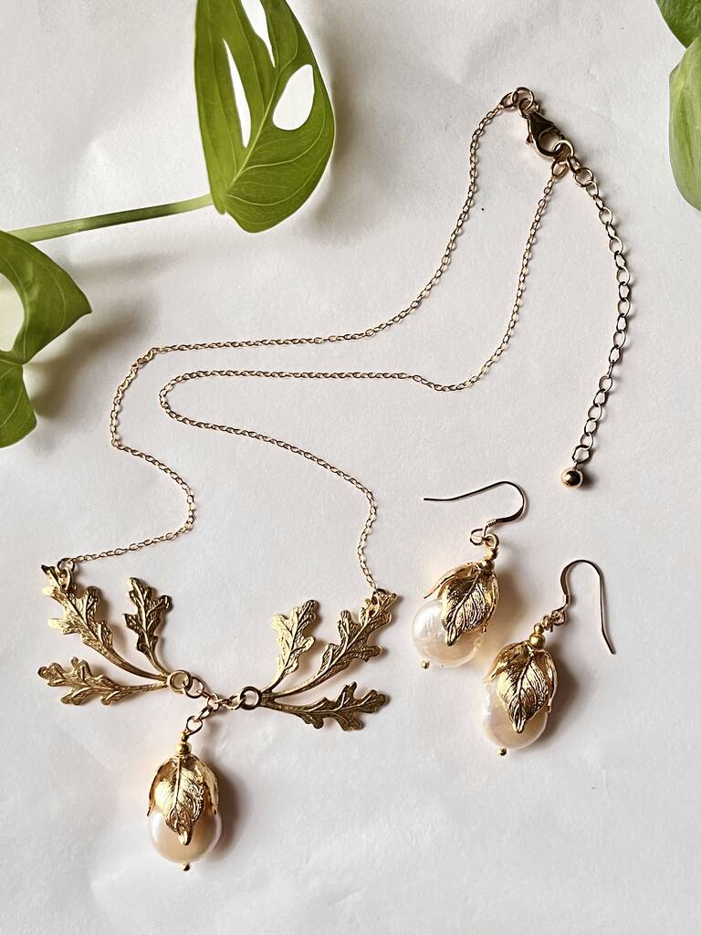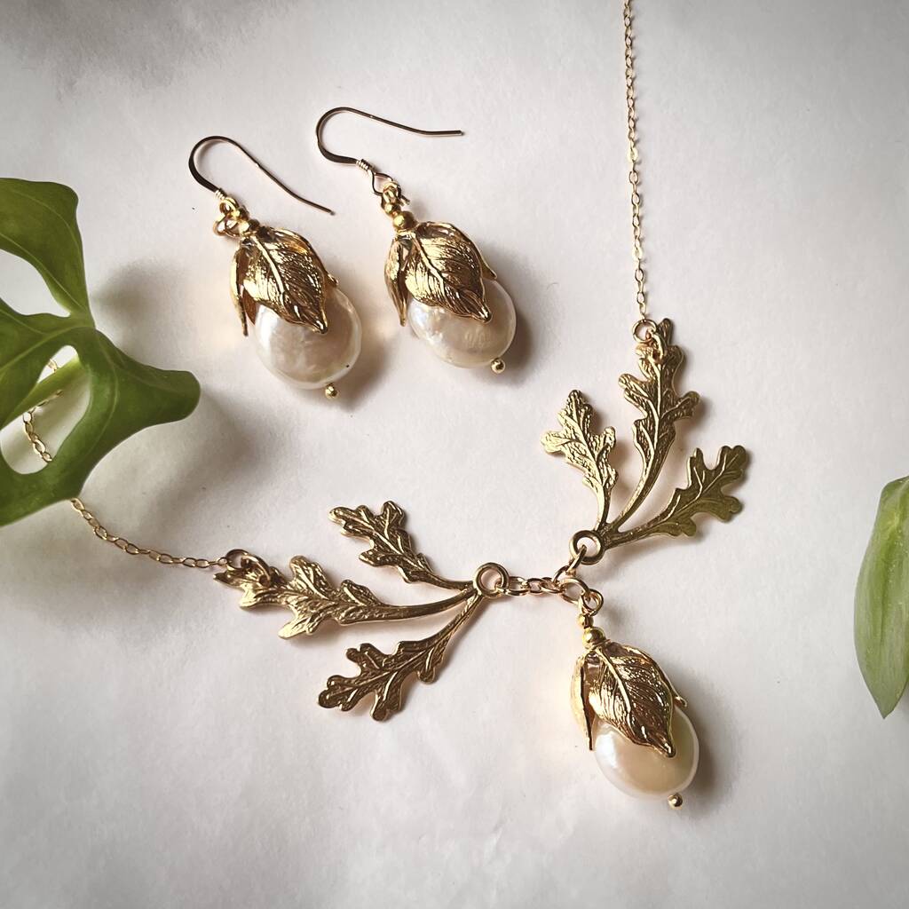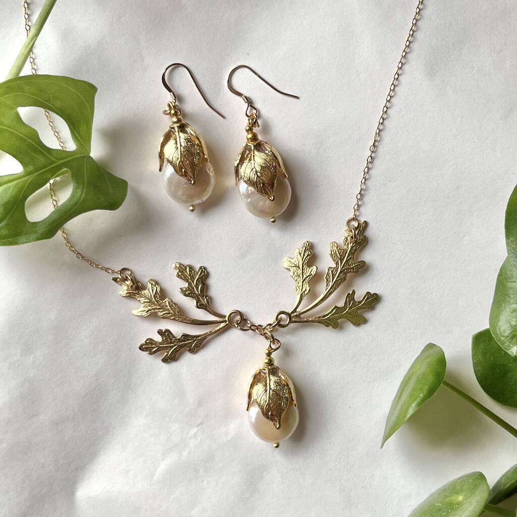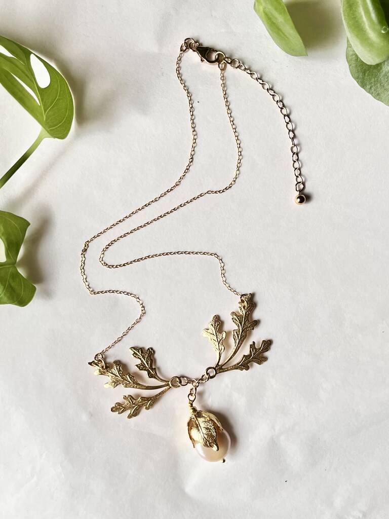 The Agatha Necklace Pearl Oak Leaf Baroque Coin Freshwater Gold Filled Handmade