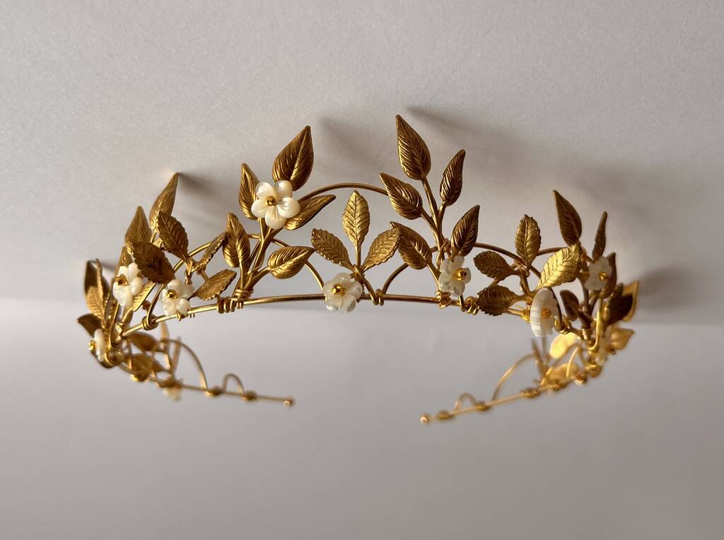 The Margot Crown Leaf Vine Mother Of Pearl Carved Shell Art Nouveau Headpiece, 1 of 12