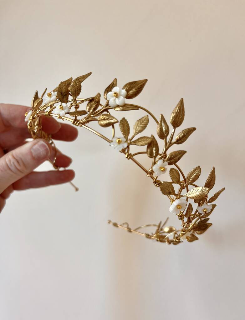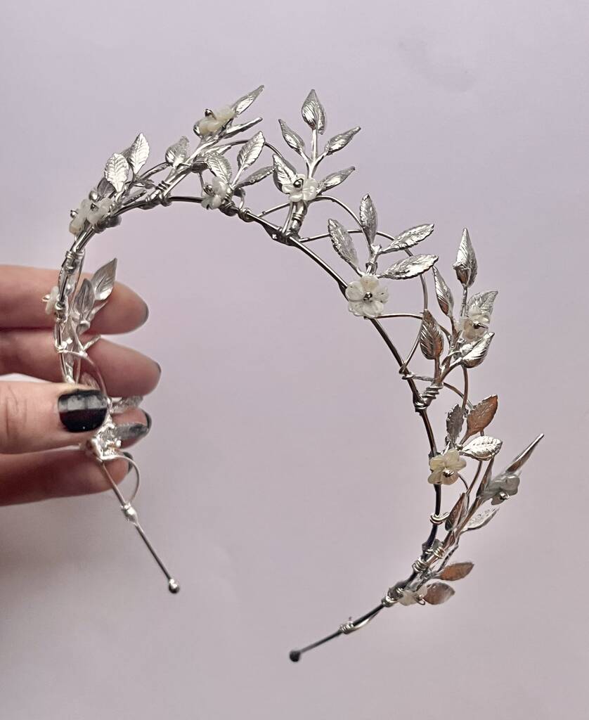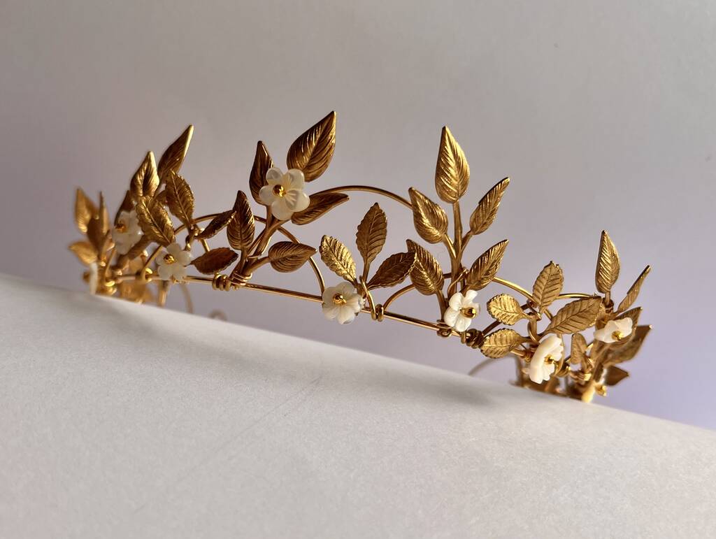 • The Margot Crown Leaf Vine Mother Of Pearl Carved Shell Art Nouveau Headpiece, thumbnail 12 of 12