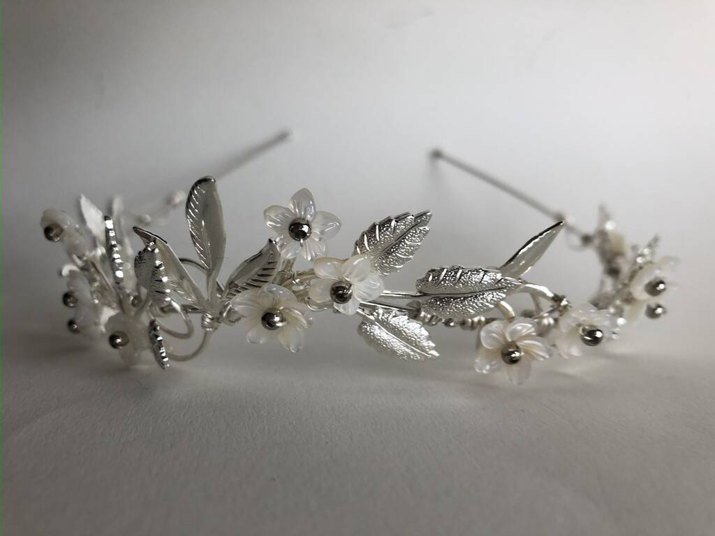 The Ostara Crown Gold Silver Shell Mother Of Pearl Floral Hair Vine Bridal Headpiece