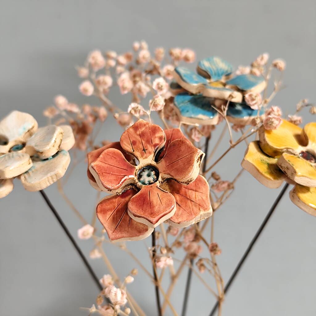 This handmade colourful ceramic bouquet looks beautiful all year round. Mix the flower stems with dry or fresh flowers. Make your own artificial art display.
