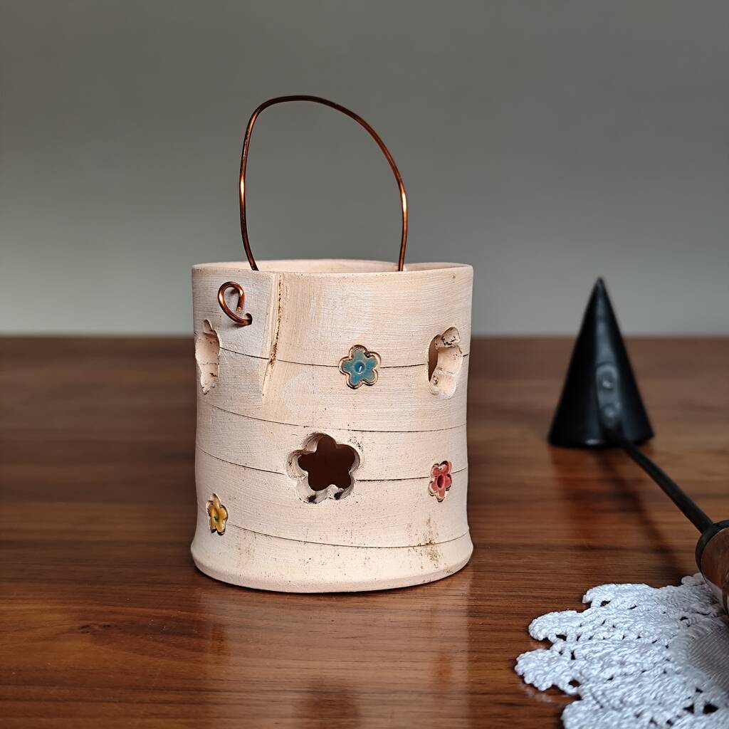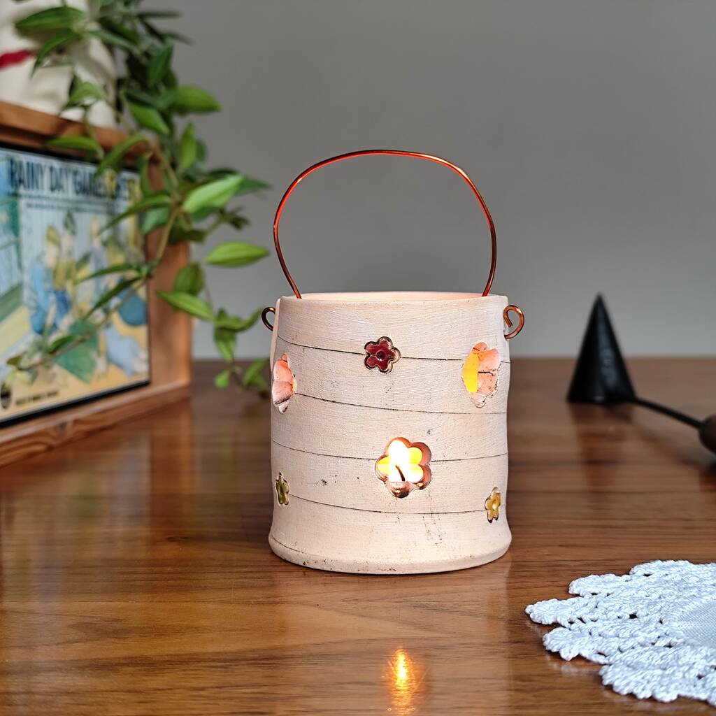 Ceramic Tealight Holder With Threaded Colourful Daisies