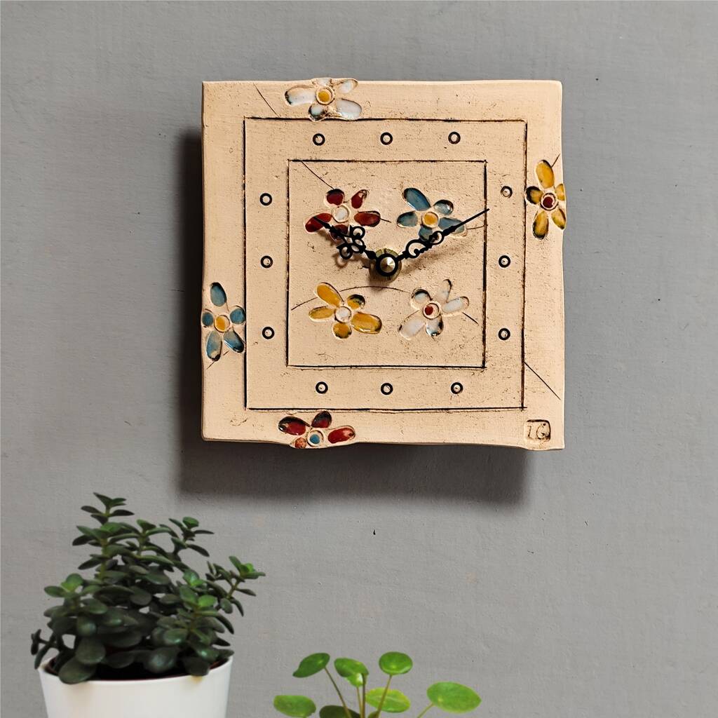 • Clock Wall Tile With Bright Flowers, thumbnail 6 of 6