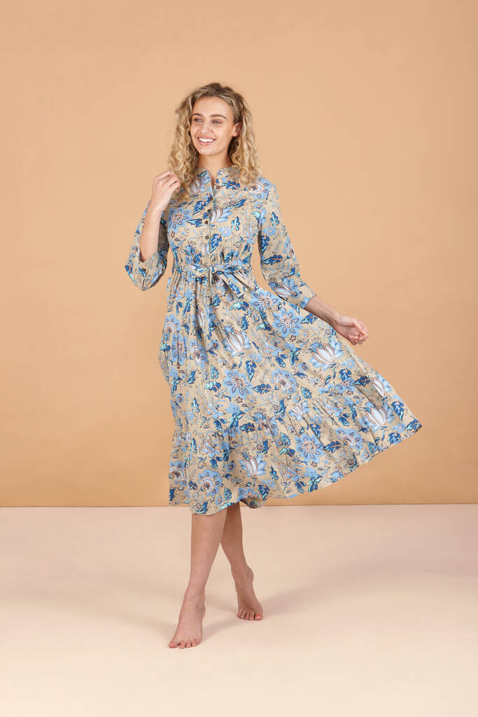 Indian Cotton Indigo Lotus Print Dress, 1 of 3
