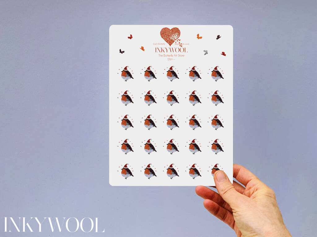 **ADD 5 OR 25 (30% DISCOUNT) BUTTERFLY ROBIN CHRISTMAS STICKERS FOR ENVELOPE OR ANYWHERE