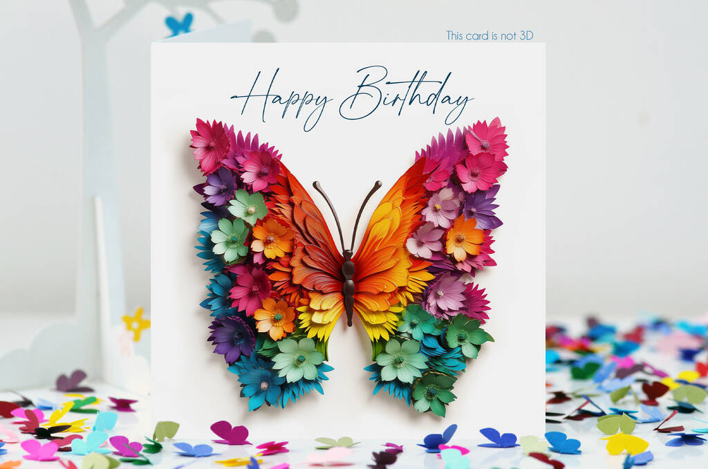 A Velentines butterfly love hearts card. Each butterfly represents love. The card is a digitally printed, not 3D