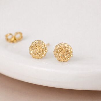 Gold Plated Sterling Silver Marigold Flower Stud Earrings – 7mm