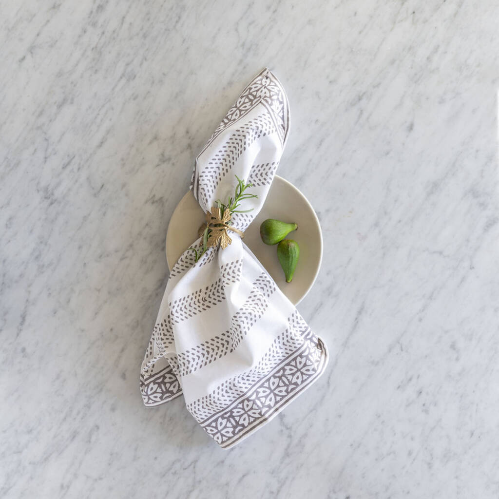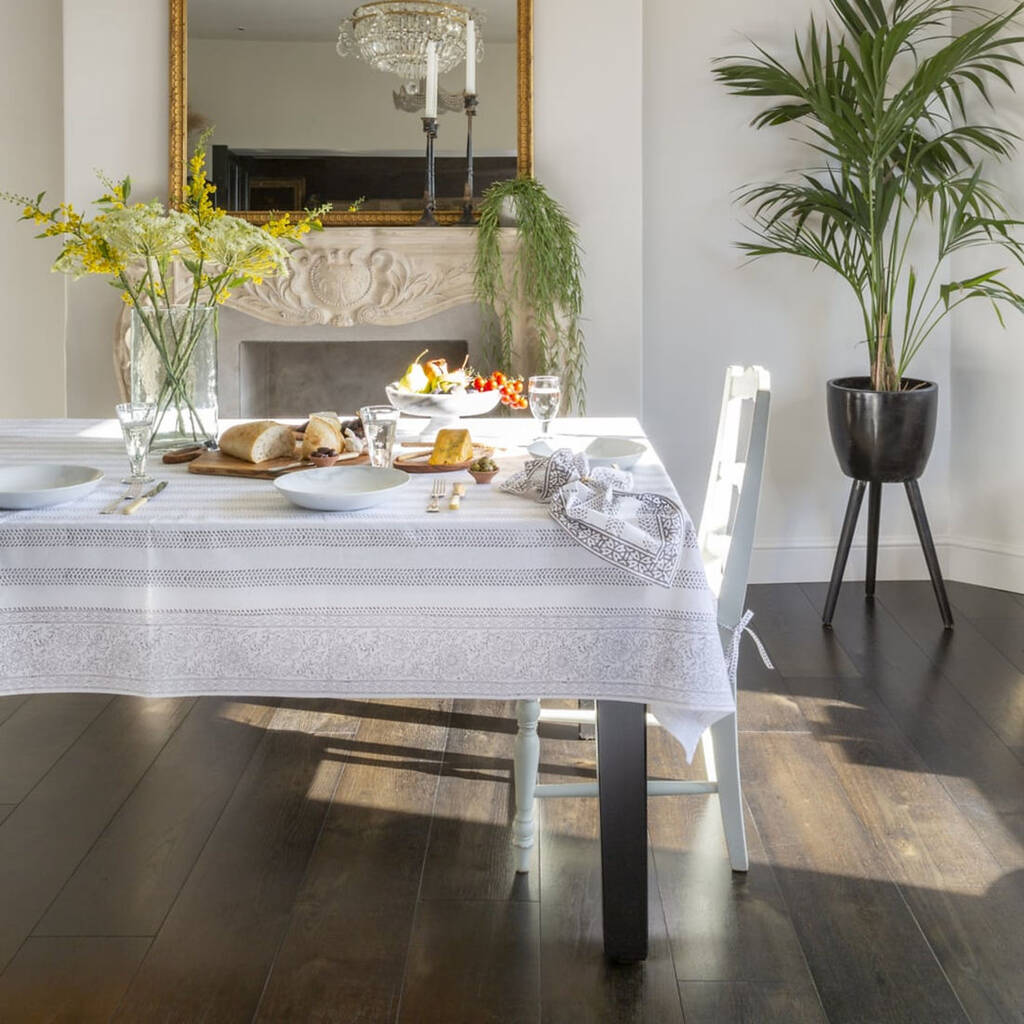 Misty Grey Cotton Hand Block Printed Tablecloth