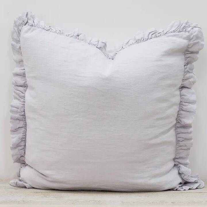 Olivia Large Ruffle Pillow Cushion Silver Grey