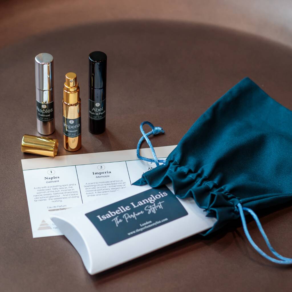 A handpicked autumn perfume set featuring three warm, spicy and woody 8ml niche fragrances from British artisan brands. A luxurious, thoughtful gift for scent lovers.