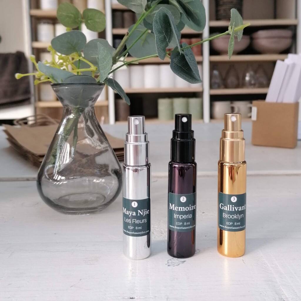 This perfume gift set includes three refillable 8ml sprays, each providing 80–100 sprays (around 2–3 weeks of daily wear).