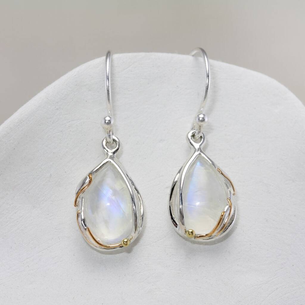 Handmade Natural Rainbow Moonstone Droplet Earrings