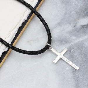 Personalised Silver Cross And Mini Tag Leather Necklace