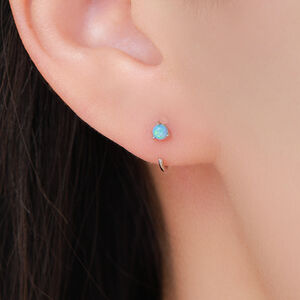 Small Opal Blue Forget Me Not Cz Stud Earrings