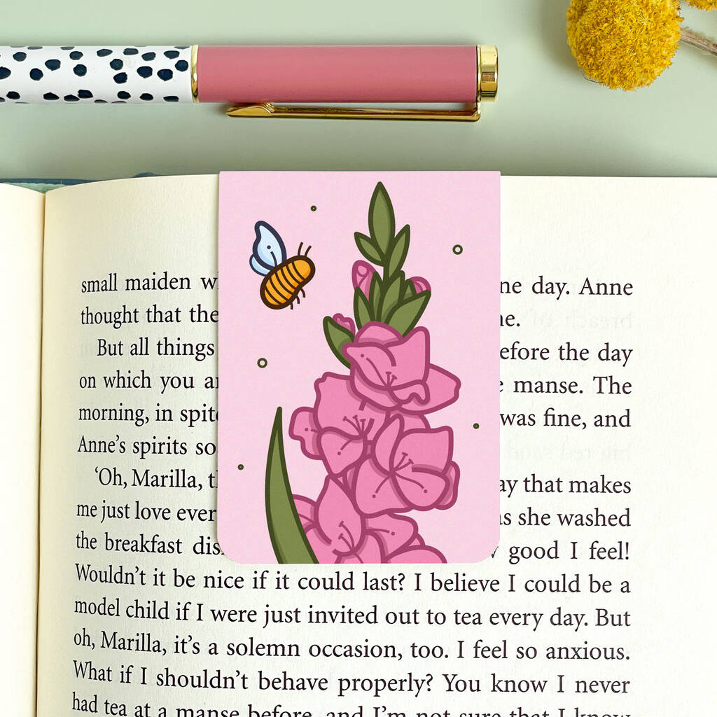 A birth flower inspired magnetic bookmark featuring colourful gladiolus to represent August.