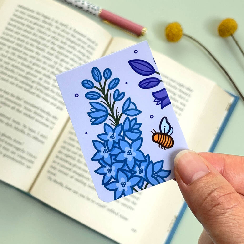 Celebrate July birthdays with this beautifully illustrated, double sided, birth flower magnetic bookmark. It features beautiful purple larkspur (July's birth flower) and bumble bees. Each side has a different floral illustration so that you can choose your favourite!