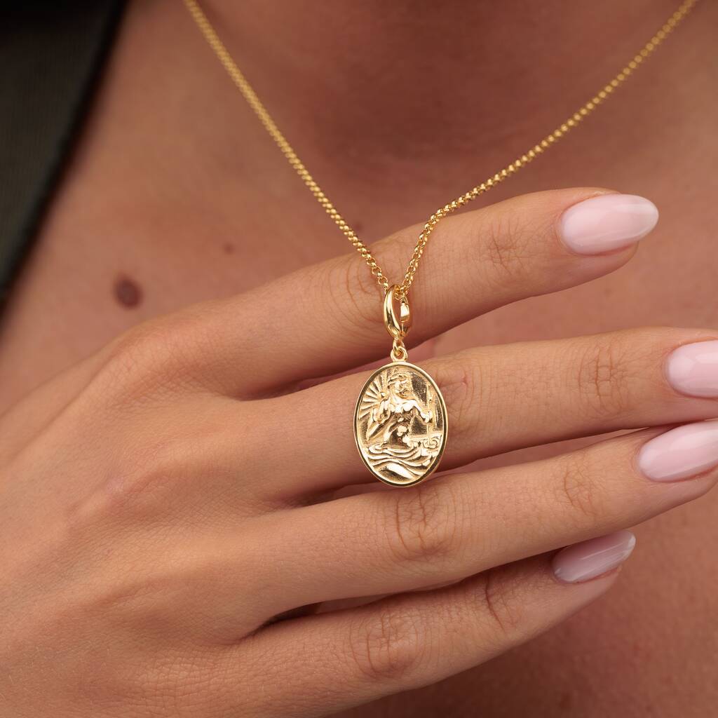 Engraved Gold Sterling Silver St. Christopher Necklace, 1 of 5
